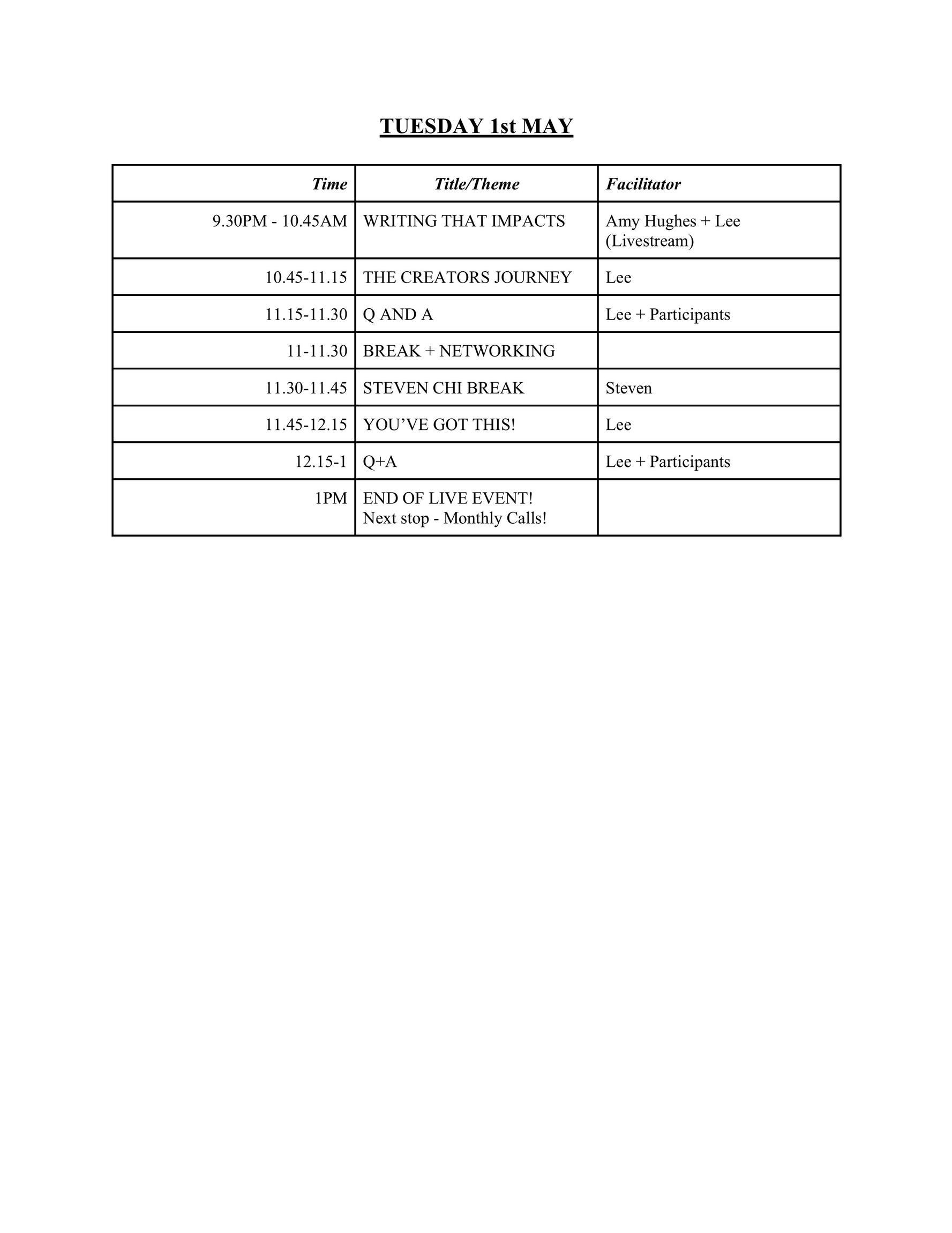 This was the schedule for our last version of Impact the World and we're providing it here for your reference.